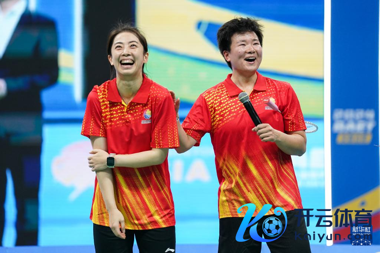 12月15日,王适娴(左)、何冰娇在明星挑战赛后接管采访。