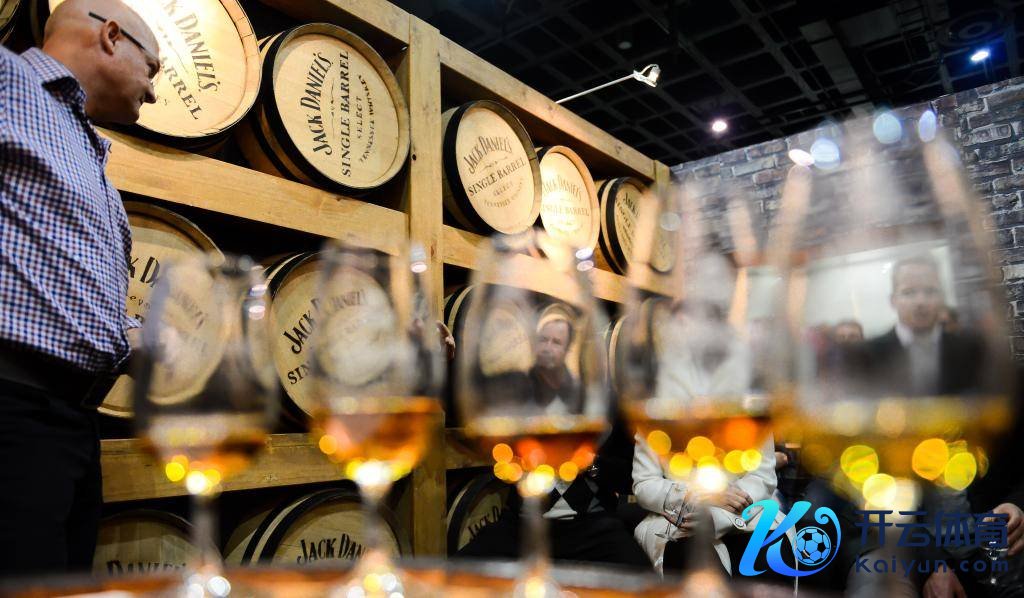 图为2014年11月12日,在南非约翰内斯堡举行的南非2014FNB威士忌酒节上,又名杰克·丹尼品牌的职责主谈主员(左)向参不雅者先容该品牌的威士忌酒。