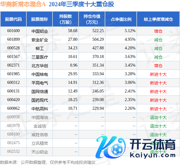 华商新常态搀和A为搀和型-生动基金,左证最新一期基金季报长远,该基金金钱设立:股票占净值比85.98%,无债券类金钱,现款占净值比24.3%。基金十大重仓股如下: