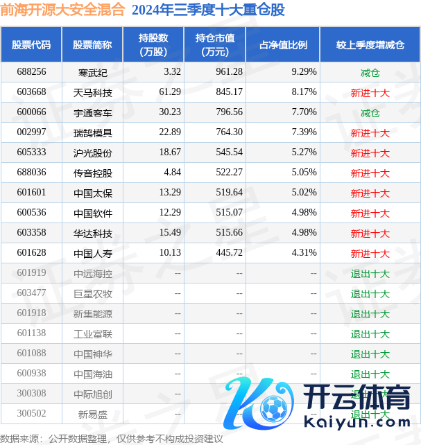 前海开源大安全搀和为搀和型-生动基金,凭据最新一期基金季报显现,该基金钞票成立:股票占净值比93.07%,无债券类钞票,现款占净值比6.29%。基金十大重仓股如下: