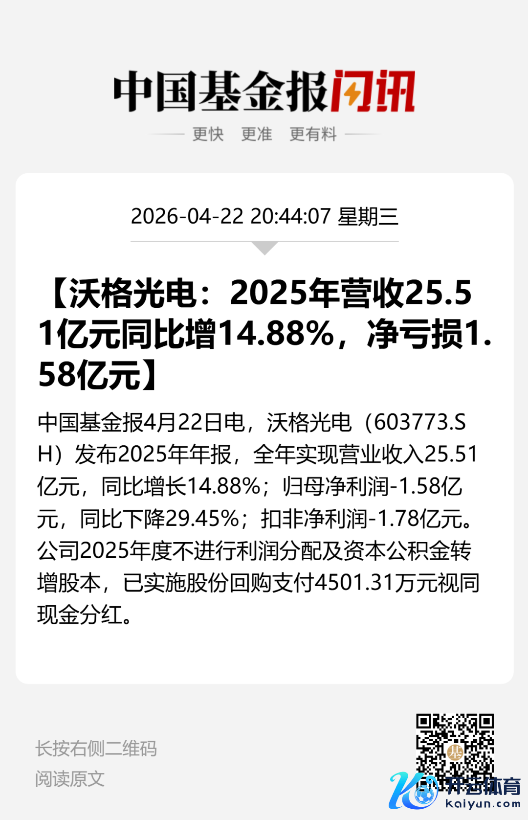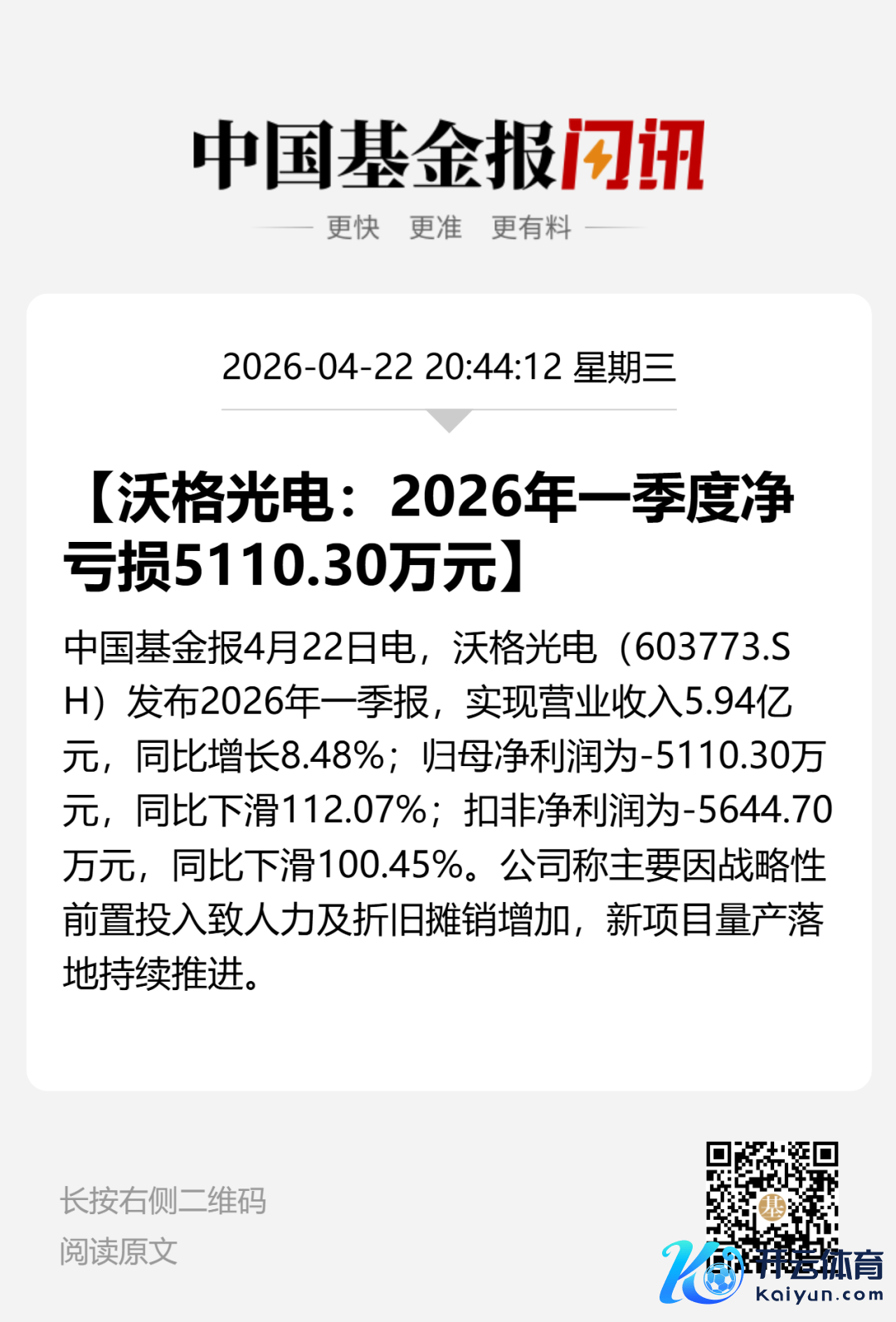 4月22日晚间,生意航天大牛股沃格光电(证券代码:603773)败露2025年年报和2026年一季报。这份收获单与公司近期“10天6板”的市集热度酿成热烈反差:营收稳步增长,但赔本抓续扩大,事迹承压显耀。